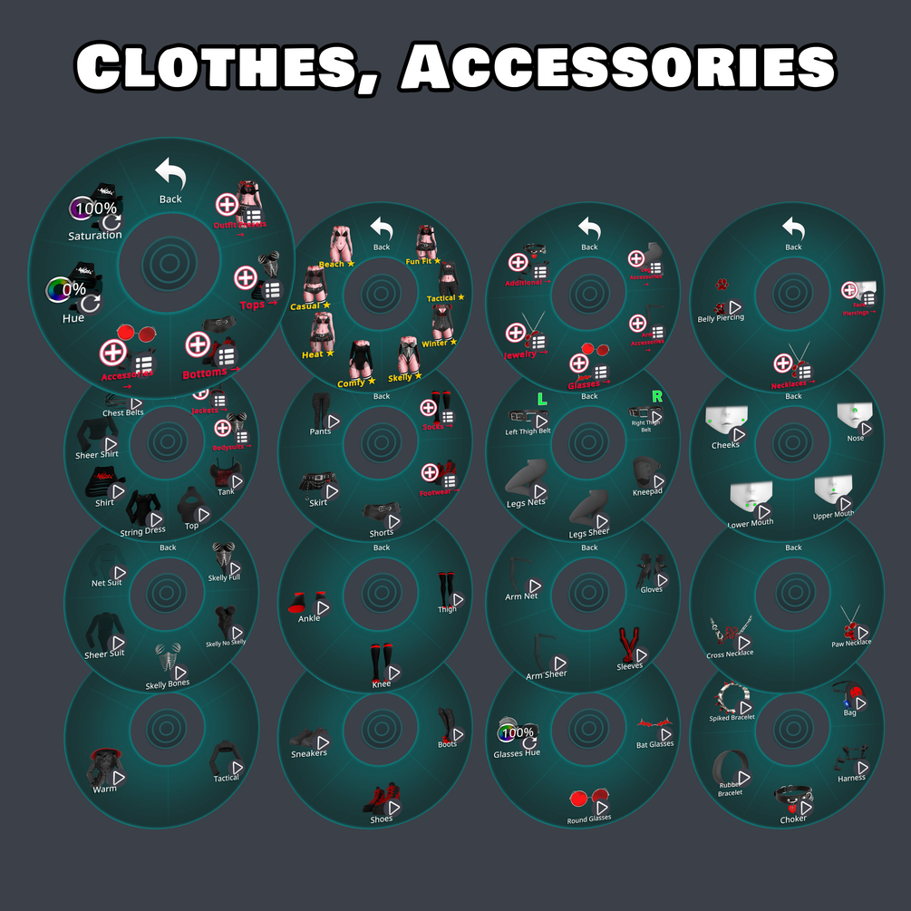- Accessories such as Jewelry, Choker, Nets/Sheer, Bat/Round Glasses and more!